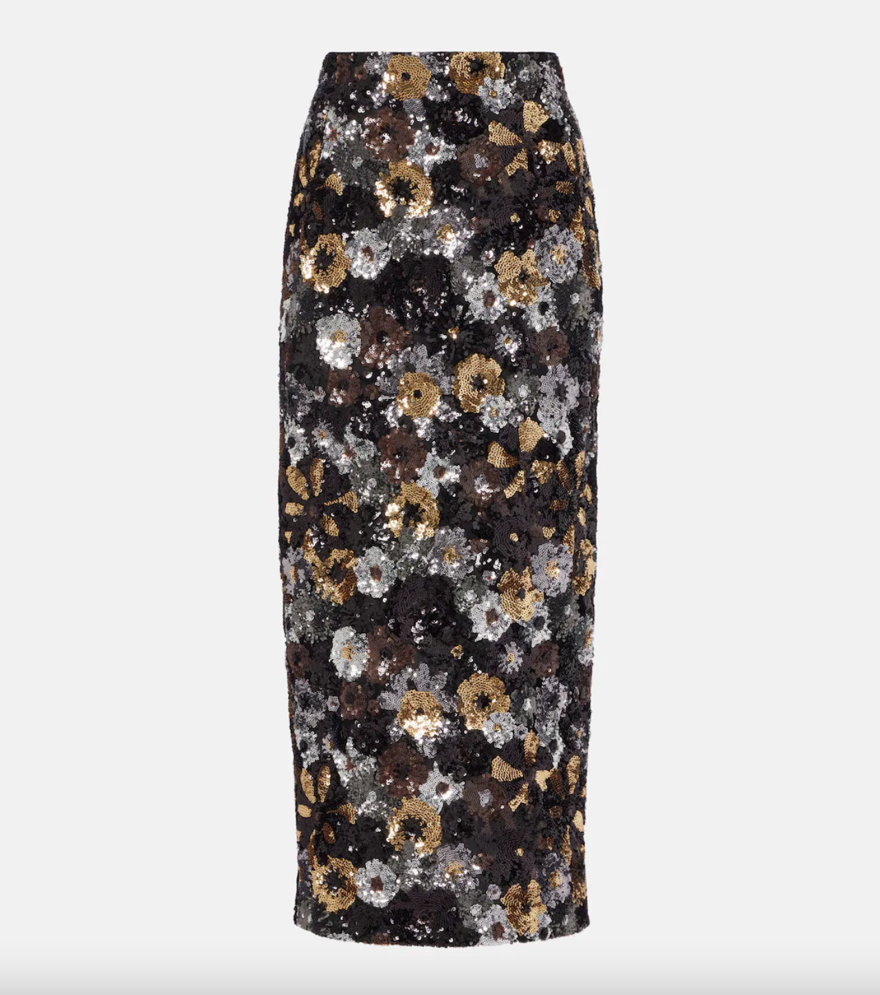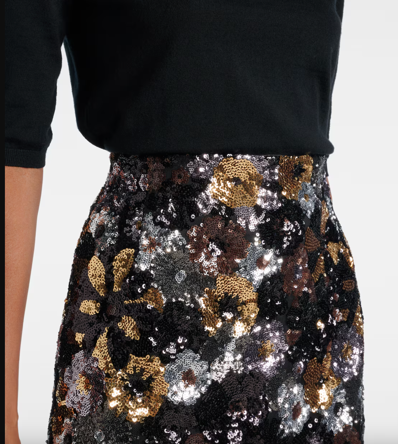 floral sequin motif. This sleek design features a tight-fitting