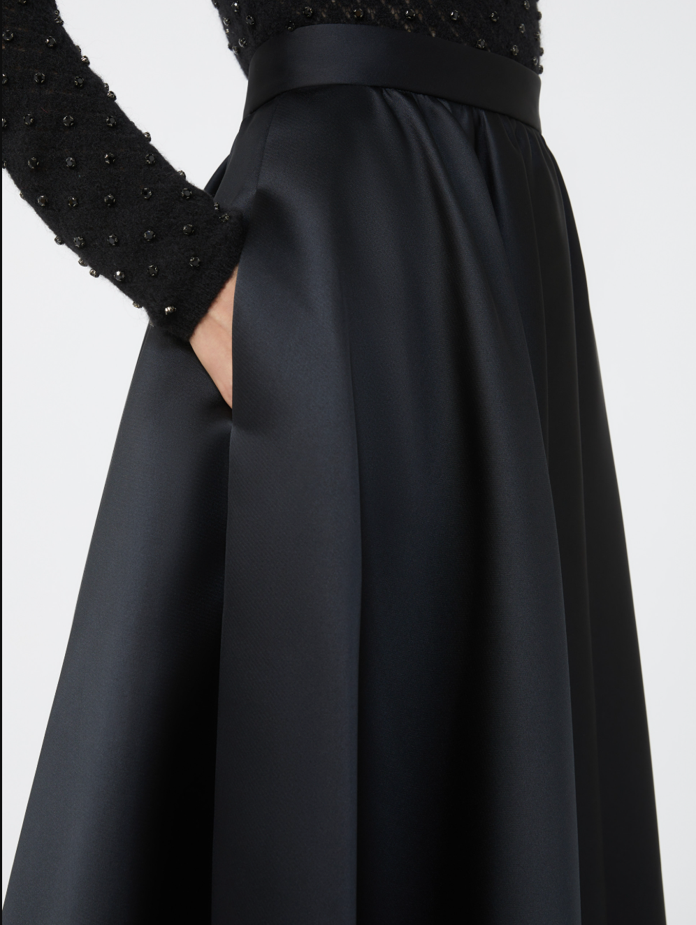 Midi skirt with a couture-inspired silhouette featuring a graceful,
