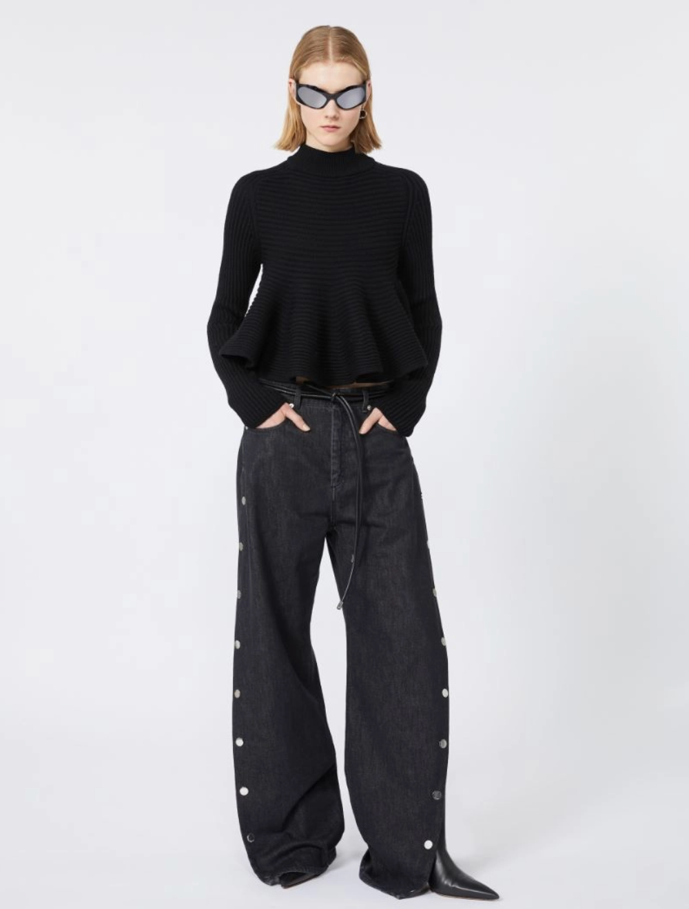 Baby-doll style Astice jumper by Sportmax, wide and flared at the hem. Crafted from pure wool, it features a rounded neckline and saddle sleeves. Pure virgin wool yarn jumper.