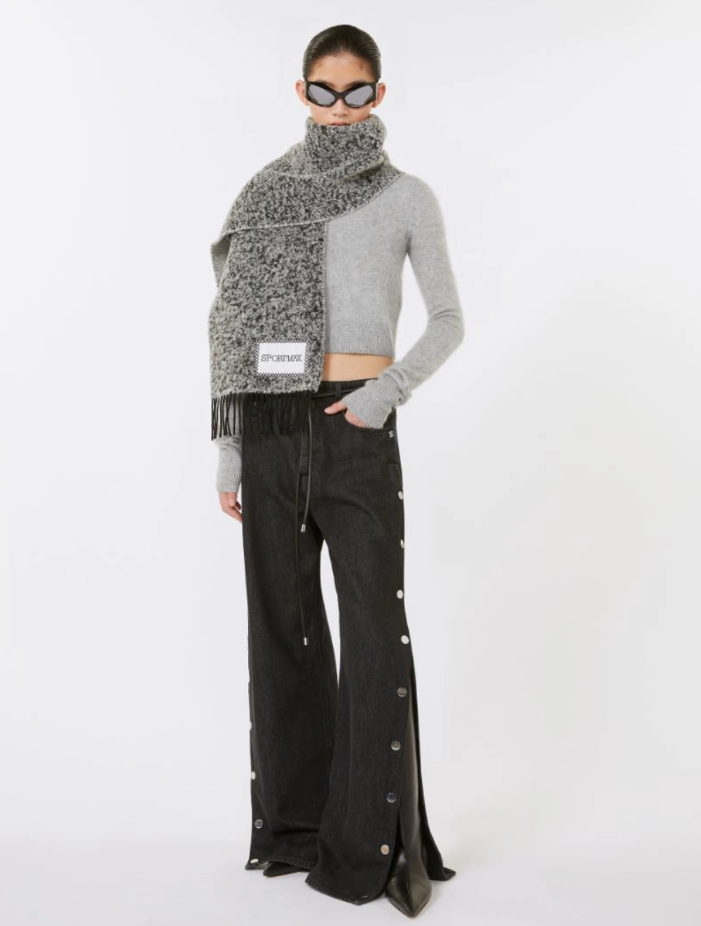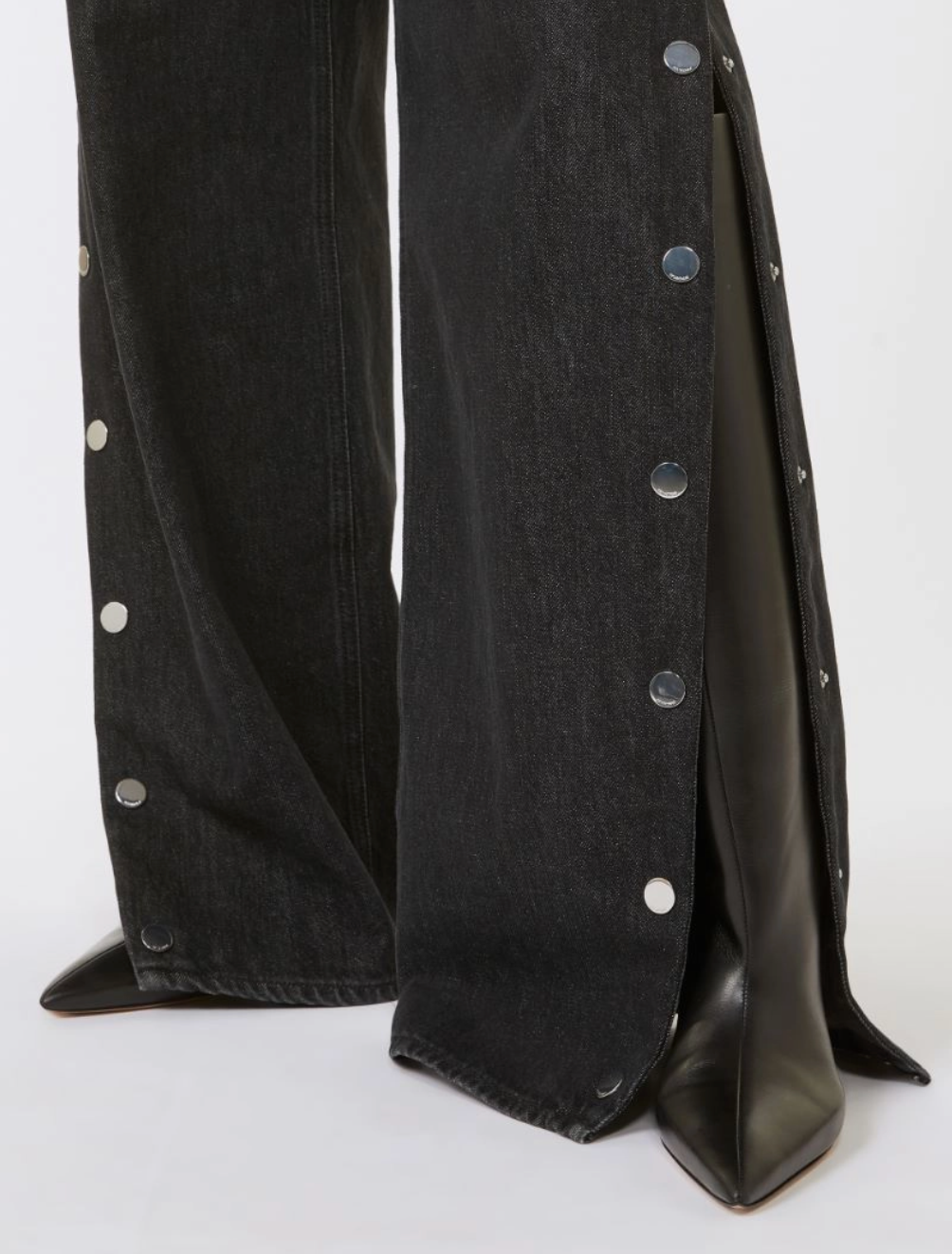 Galante jeans by Sportmax in soft and lightweight black denim, with wide leg, low waist and crotch. The garment features a set of snap buttons along the sides.