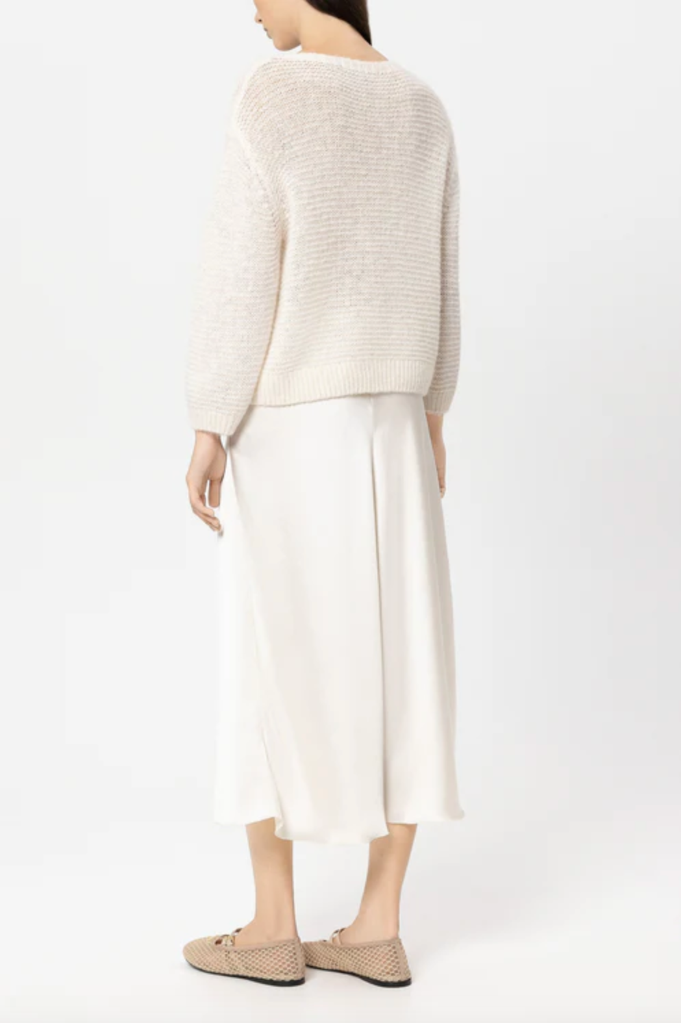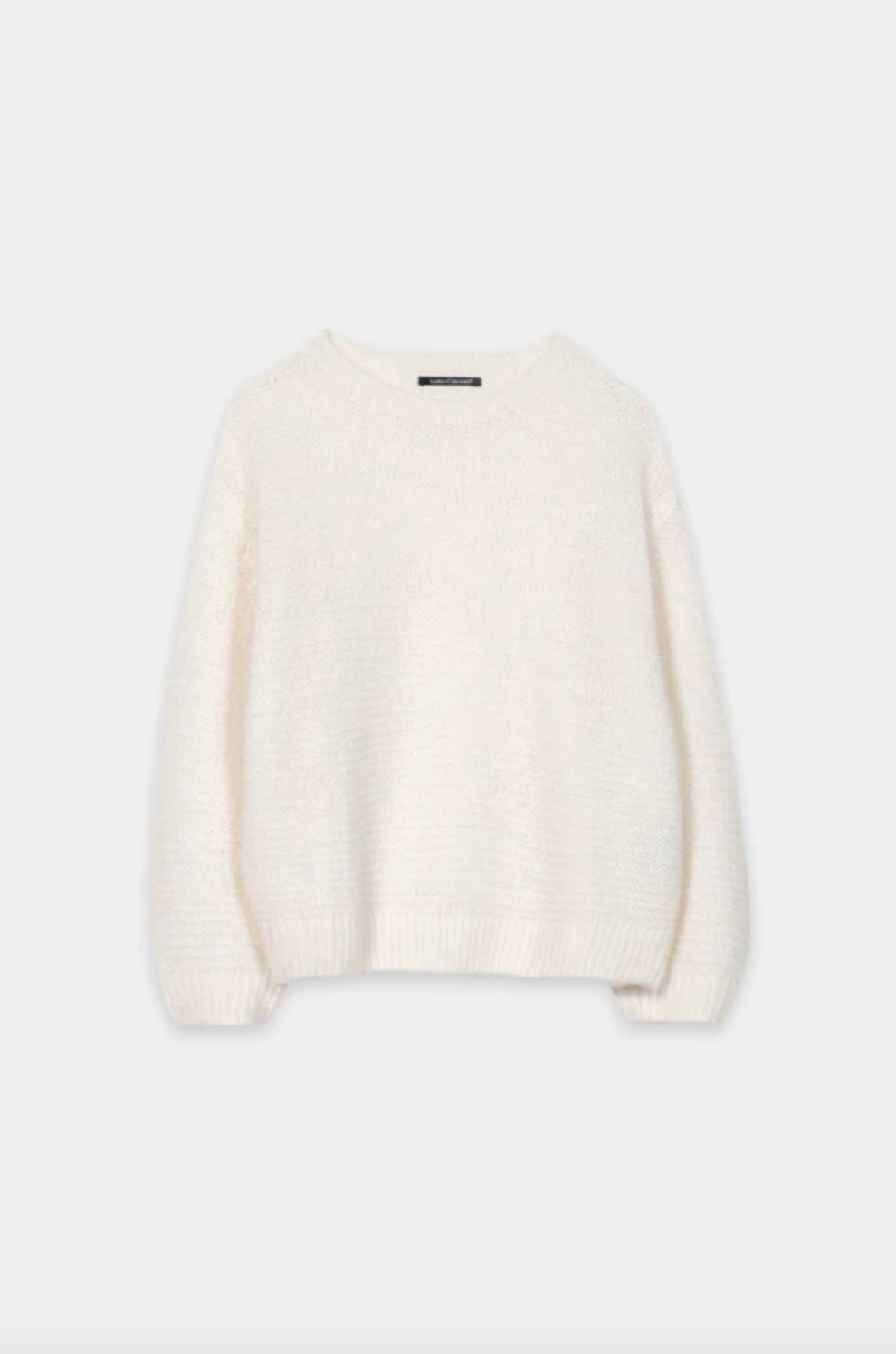 Sweater made from a lightweight alpaca and wool blend with a round neckline and cropped sleeves. The open left structure creates a casual, airy look.