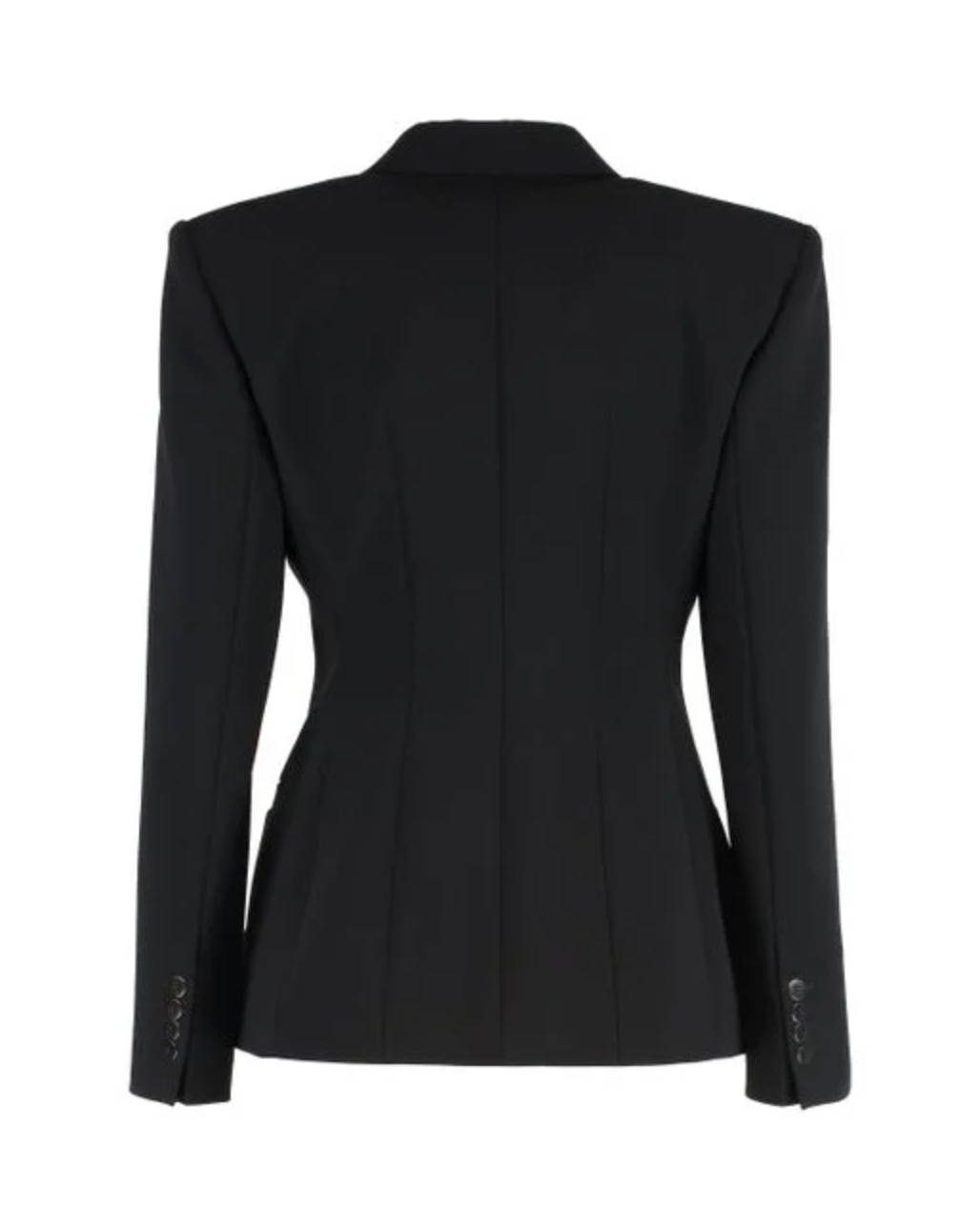 Black Key double-breasted structured blazer by Max Mara Studio. Fully lined.
